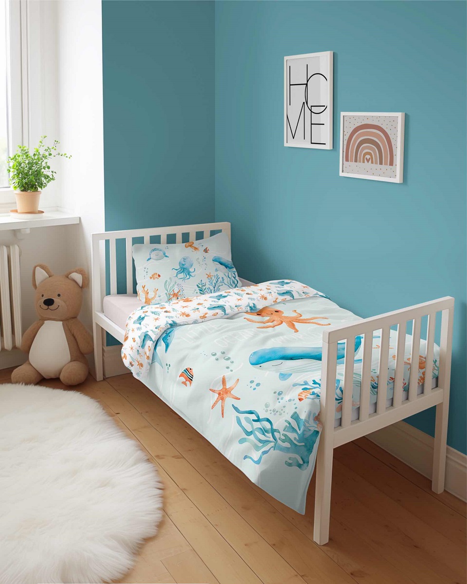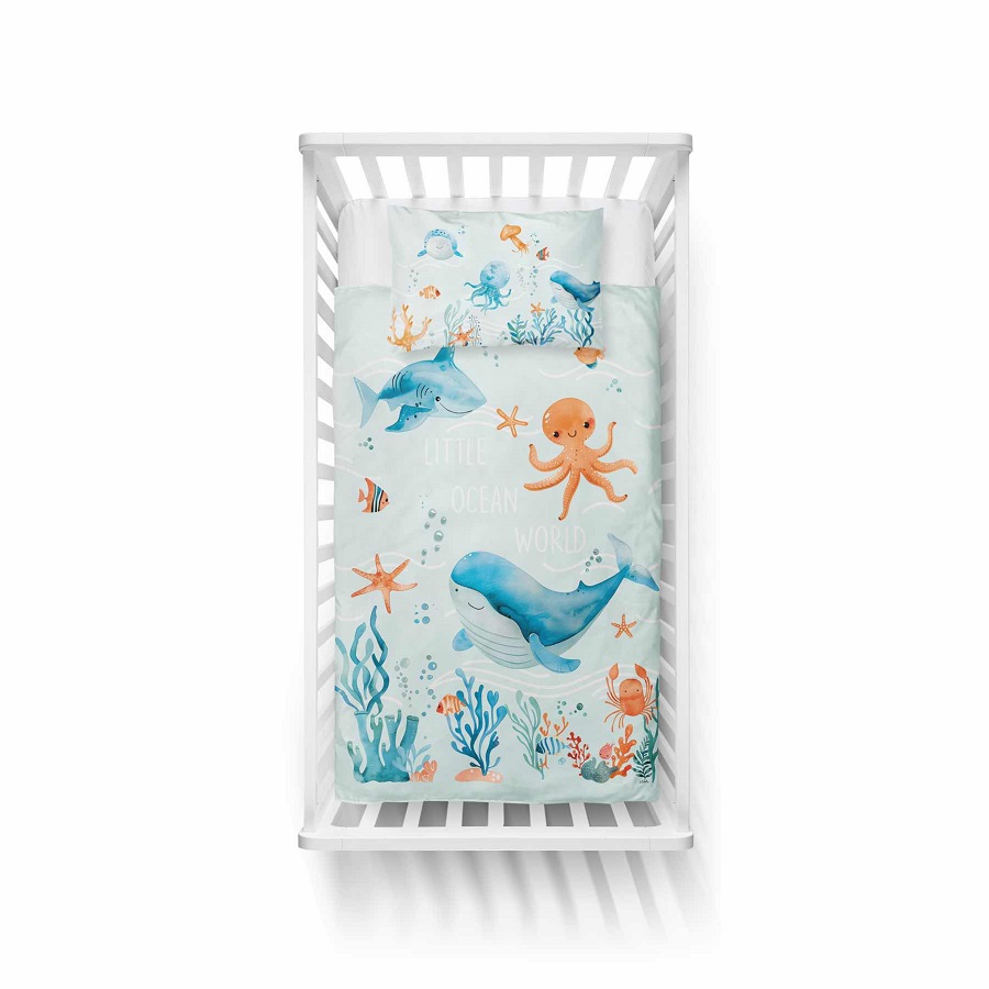 Lasten pussilakanasetti 100×135 cm – Mayamoo, Little Ocean Word / B
